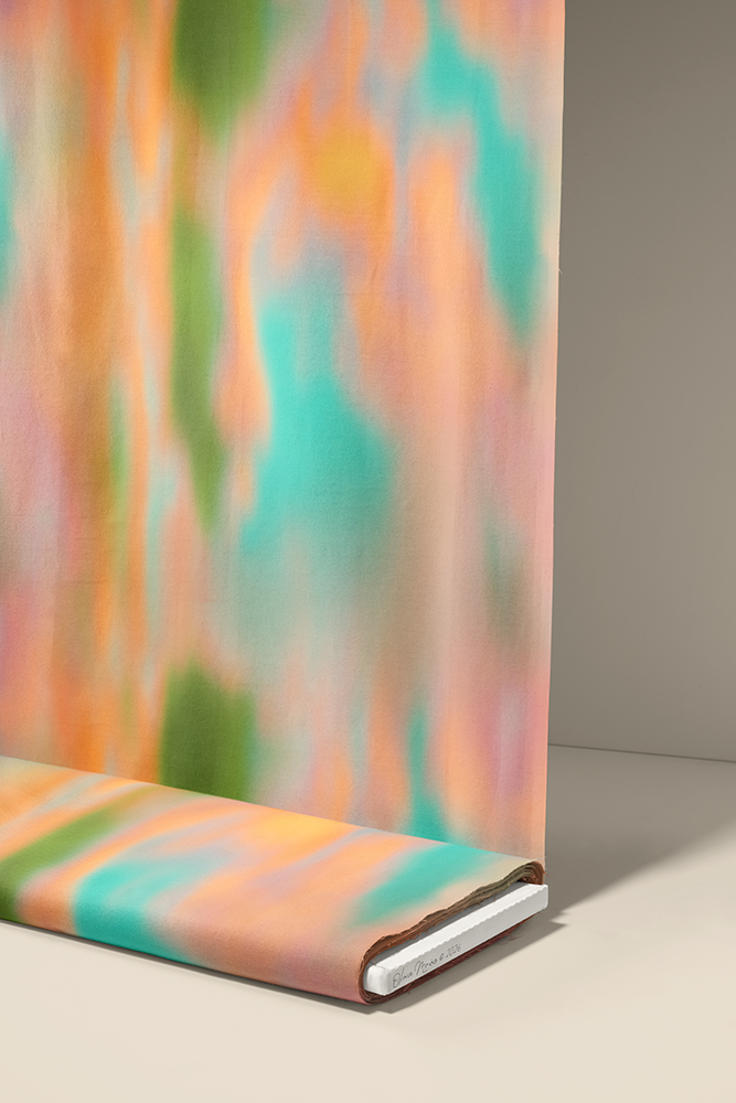 Oranges, pinks and greens inspired by the sun-warmed Australian landscape; dry terrain set against dense, living colour.